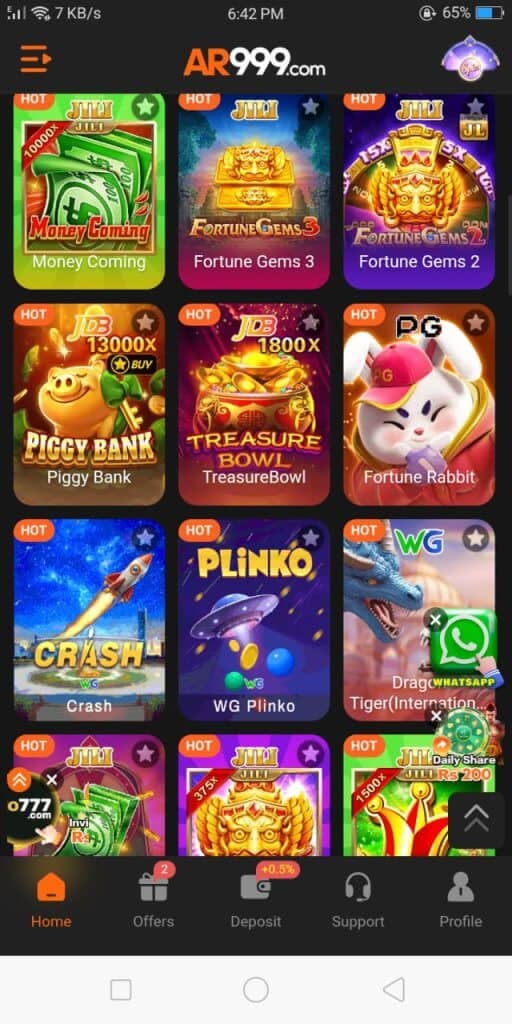 The fast responses solve problems very quickly without any long waits. This service shows that the platform cares about the users and is always loyal with its users Because of this, many players recommend the AR999 Real money app to others people.
